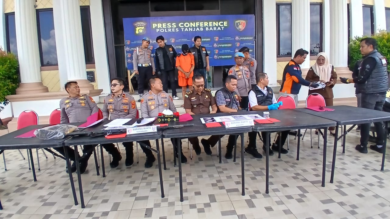 Kapolres Tanjab Barat, AKBP Agung Basuki, S.I.K., M.M. menyampaikan bahwa tersangka berinisial JM (56), seorang wiraswasta asal Tebing Tinggi, telah resmi ditetapkan sebagai pelaku utama dan kini ditahan untuk penyidikan lebih lanjut.